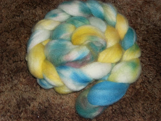 Ok, so what have I learned about spinning in the last few days? Well, in order to get proficient, it's important to spin some every day, or almost everyday. I think maybe there is only one day that I haven't spun in the last 7. The more I spin, the more even my yarn becomes, as is witnessed with the yarn that I am calling my Easter egg yarn because I dyed the roving in Easter egg colors. The yarn spins up nicely in pastels, as in the picture, and them knits up nice too. The project is my first ever knitted tam and I have been knitting it while watching the Olympics in the evening . I have kept the yarn at a pretty even weight most of the time, around a heavy worsted or aran weight. There are still some thinnish spots now and again but I have gotten much better over the last week. I should be almost done with the tam except I have also been making my wool combs over the last couple of evenings too. I have the holes drilled and the nails epoxied in place but unfortunately cannot find the hand saw to finish them off. I'll go over to my son's house tomorrow and use his. I found a couple of videos on youtube that I wish I had watched before I started making them; I might have bought some different wood to use. It's ok though; these will work. Then of course, I have been dyeing some of the Corriedale I got a couple of weeks ago so that I can comb it as soon as my combs are ready. I only need a small amount of each color so I can crochet one of those long striped scarves.